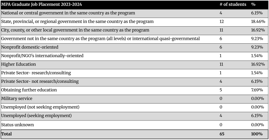 The mission is fulfilled by educating and inspiring students for careers in management, administration, and policy analysis in government and nonprofit organizations domestically and abroad. The program produces leaders with a wide range of analytic, communicative, and managerial abilities to meet the demands of contemporary public and nonprofit sectors. The MPA curriculum encourages within students the development of the intellectual capacities and professional skills necessary for the successful performance of critical public service jobs. The program accomplishes these goals by contributing to the advancement of the public administration and policy field through teaching, research, and public service. The program also creates an awareness of and sensitivity to ethical concerns and accountability issues within the public service arena.