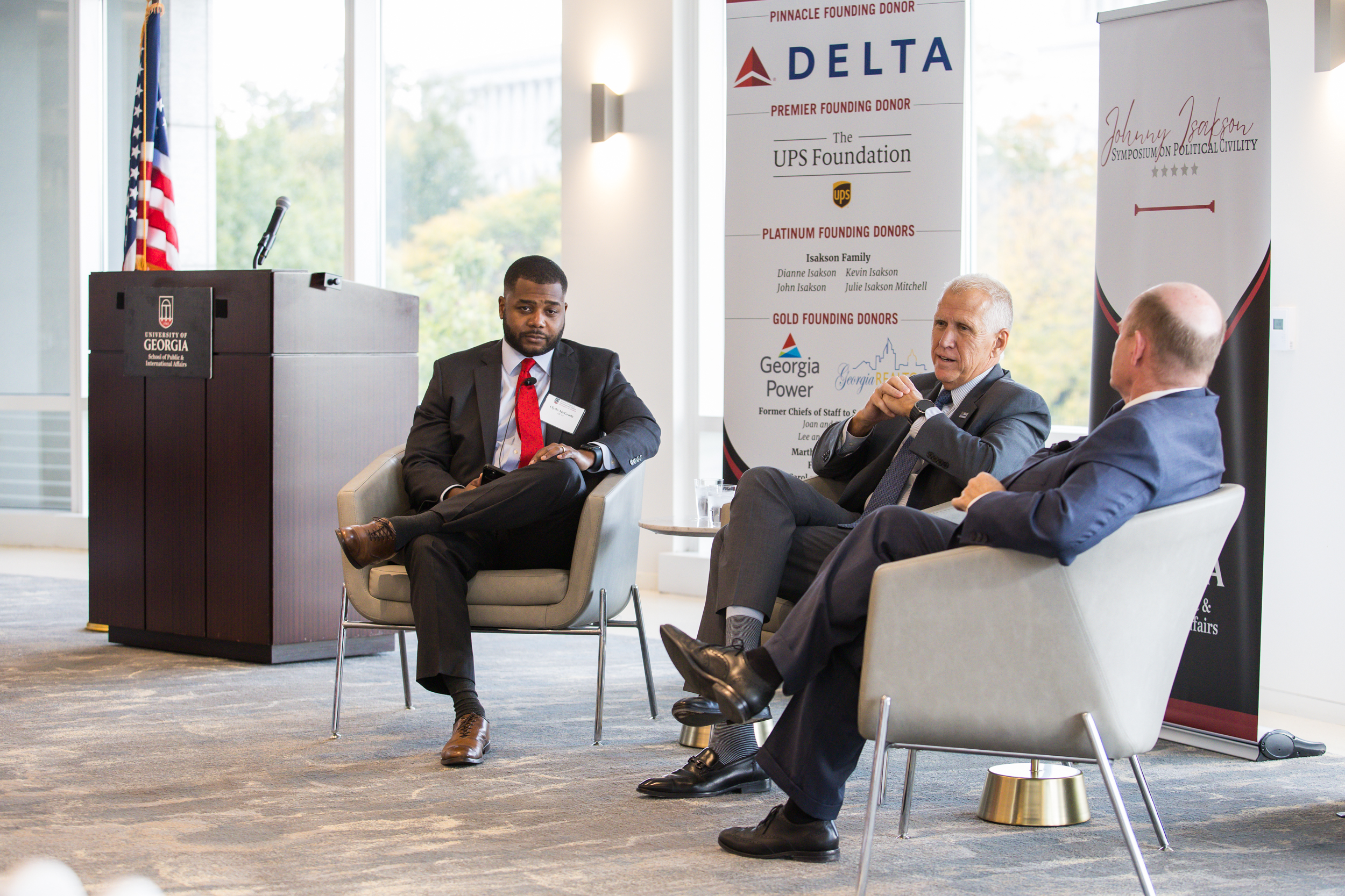 On October 22, the University of Georgia School of Public and International Affairs hosted Senator Chris Coons (D-Delaware) and Senator Thom Tillis (R-North Carolina) for the third annual Johnny Isakson Symposium on Political Civility, an event that celebrates the late senator’s legendary qualities of decency, statesmanship, and dedication to common sense problem-solving in the public interest.